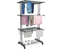 Vonia Droogtoren - Droogrek - Wasrek - Wastoren - 3 Lagen - Inklapbaar - 72x50x172 cm - DonkerGrijs