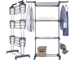 Wasrek op 3 Etages met Parkeerrem Wielen - Roestvrijstalen Buizen - Maximale Belasting 38 KG - Grote Capaciteit - Maat 172 x 72 x 50cm