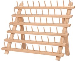 Kurtzy 60 Spoelen Houten Draad Rek Houder - Draden Organiser Standaard met Muur Haken – Staand of Muurgemonteerd – Berkenhouten Naai Spoel Houder Voor Boorduurwerk, Quilt- en Naaigaren