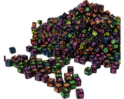 MGM Trading - Kurtzy Neon Gekleurde Acryl Vierkante Alfabet Kralen (1000 Stuks) – A-Z Letter Kralen 6mm – Ideaal voor Sieraden, Armbanden, Kettingen, Sleutelhangers, Kralen Rijgen, Kunst & Hobby, Zelfgemaakte Cadeaus
