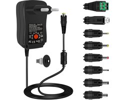 Ynkkvre - universele voeding 30W AC naar DC - multi-spanning adapter 12V/9V/7,5V/6V/5V/4,5V/3V 1A/2A - inclusief 5V 2,1A USB-poort en 8 DC-connectoren voor LED-strips, routers, CCTV-camera's, TV-box en WLAN