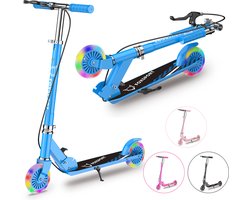 OFMOTRA Kinderstep - Scooter - met LED wielen - Opvouwbaar - Drie instelbare hoogte - met voetrem en handrem - Draagkracht tot 100 kg - blauw