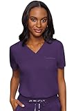 Med Couture Women's V-Neck Scrub Top, Modern Fit Tuck-in Top with Stretchy Rib-Knit Shoulders and Chest Pocket - MC7448, Eggplant, Small