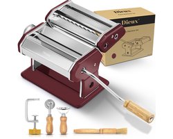 Dieux - Pastamachine Set - Rood - Pastamaker - Inclusief Pasta Tools - Houten handvat - RVS - Pasta - Ravioli - Keukengerei - Housewarming cadeau