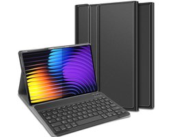 Just in Case Toetsenbord Hoes hoesje geschikt voor Xiaomi Pad 7 Pro/Pad 7 - Effen Zwart - Kunstleer - AZERTY klavier toetsenbord indeling