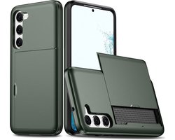 Hoesje met Kaarthouder Slider Geschikt voor Samsung Galaxy S23 Plus | Pasjeshouder Achterkant | Kaarthouder voor twee á drie pasjes | Groen