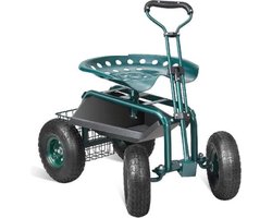 Tumex - Tuinkar Werkstoel - Werkstoel voor de Tuin - Met Wielen - 360 Graden Draaibaar - Verstelbare Zitting - 136 kg Belastbaar - Groen