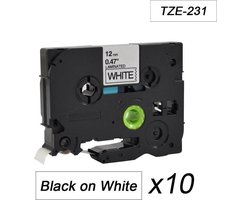 10x Tze-231 TZ231 Compatible voor Brother P-touch Label Tapes- Zwart op Wit - 12mm