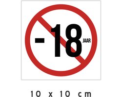 Pictogram/ bordje | "Verboden onder de 18 jaar" | 10 x 10 cm | Volwassen | 18 years | Verbod | Leeftijd | Alcohol | Sigaretten | Vapes | Kunststof | 1 stuk
