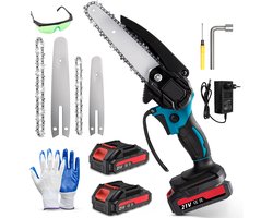 Mini Kettingzaag 21V Inclusief 2 LED Accu's - 15 cm Bladbreedte - Inclusief 2 Kettingen - Snoeizaag -Geschikt voor Makita Accu's - Takkenzaag