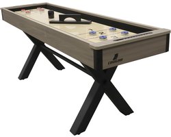 Cougar Mason American Shuffleboard Tafel – Luxe Sjoelbak met X-vormige Poten – Inclusief Tafelblad, Pucks & Scorebord – Stijlvolle Speltafel voor Jong en Oud – Eiken/Zwart