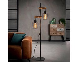 Vintage Floor Lamp for Living Room 2 Light Points Wood Retro Floor Lamp in Industrial Design Made of Metal and Wood Including Switch Black Fitting: E27 Height 151 cm Without Bulbs by ZMH