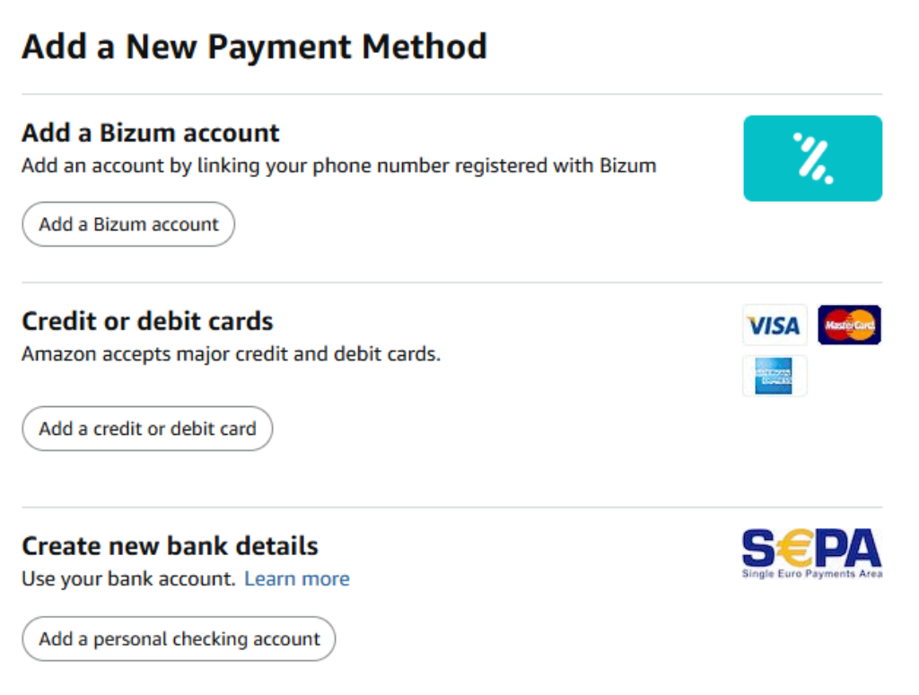 - Kies uit de beschikbare betaalopties voor “Nieuwe bankrekening toevoegen”